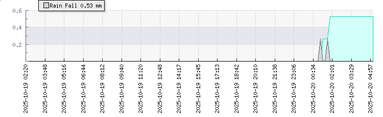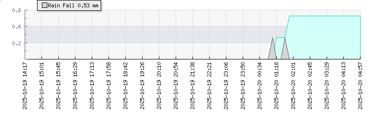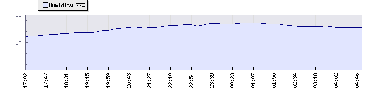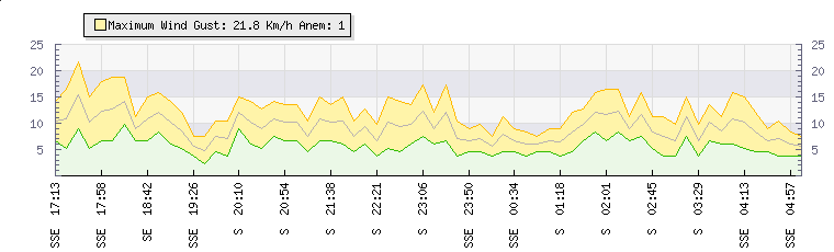 Wind Gust: | 17 km/h | Min Temp: | 16.3 °C | Max Temp: | 16.7 °C | Wind Average: | 12 km/h | Min Hum: | 82 % | Max Hum: | 85 % | |  |