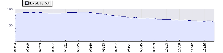 | Wind Gust: | 13 km/h | Min Temp: | 21.8 °C | Max Temp: | 27.4 °C | | Wind Average: | 8 km/h | Min Hum: | 73 % | Max Hum: | 90 % | |  |
