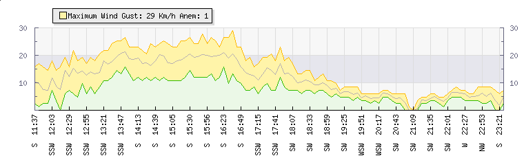 | Wind Gust: | 29 km/h | | | Wind Average: | 21 km/h | | |  |