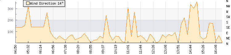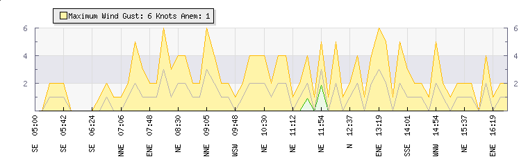 In the last few minutes the wind was West North West at an average speed of 2 knots, reaching up to 5 knots and a low of 0 knots. The gust strength is5 knots above the minimum speed |
