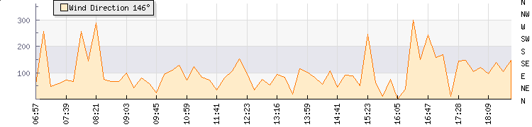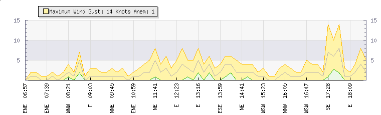 In the last few minutes the wind was South South East at an average speed of 2 knots, reaching up to 4 knots and a low of 0 knots. The gust strength is4 knots above the minimum speed |