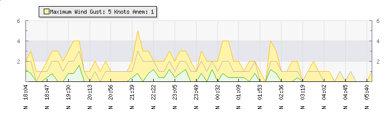 In the last few minutes the wind was Northerly at an average speed of 2 knots, reaching up to 3 knots and a low of 0 knots. The gust strength is3 knots above the minimum speed |
