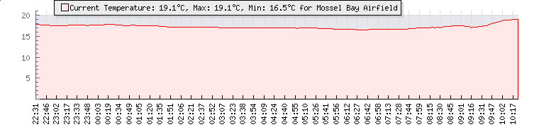| GPS Co-ordinates: | S 34º 9' 31, E 22º 3' 35 | | ASL: | 526 feet | | Sunrise / Sunset: | 06:51 / 18:14 | | Beaufort Scale: | Light Air |