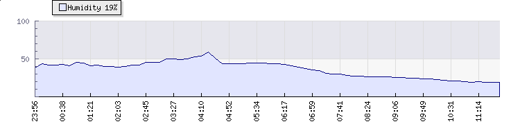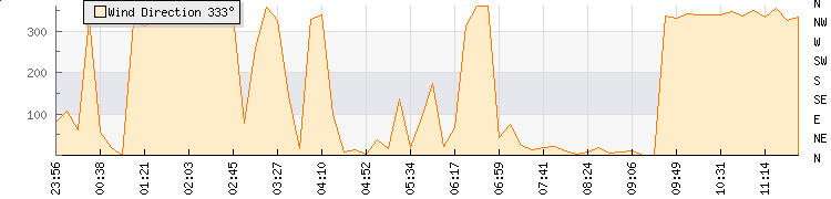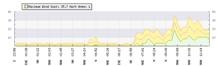 In the last few minutes the wind was Northerly at an average speed of 14 kmh, reaching up to 19 kmh and a low of 9 kmh. The gust strength is10 kmh above the minimum speed |