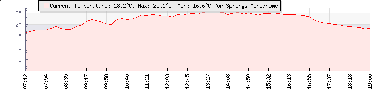| GPS Co-ordinates: | S 26º 8' 60, E 28º 14' 24 | | ASL: | 5340 feet | | Sunrise / Sunset: | 06:25 / 17:48 | | Beaufort Scale: | Light Air |