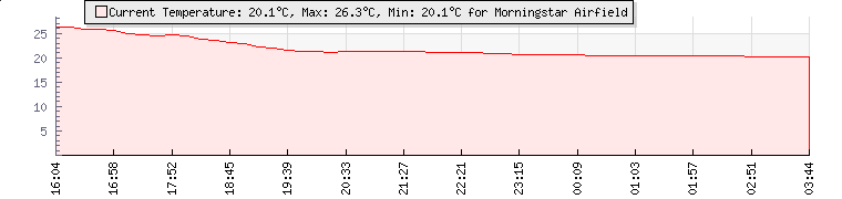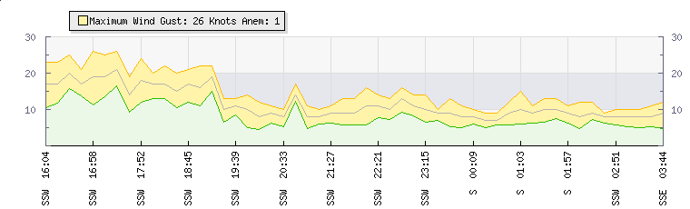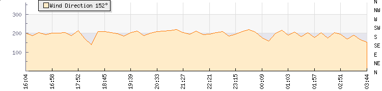 | Wind Gust: | 15 knots | Min Temp: | 20.3 °C | Max Temp: | 20.5 °C | | Wind Average: | 10 knots | Min Hum: | 81 % | Max Hum: | 82 % | |  |