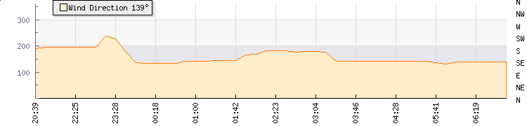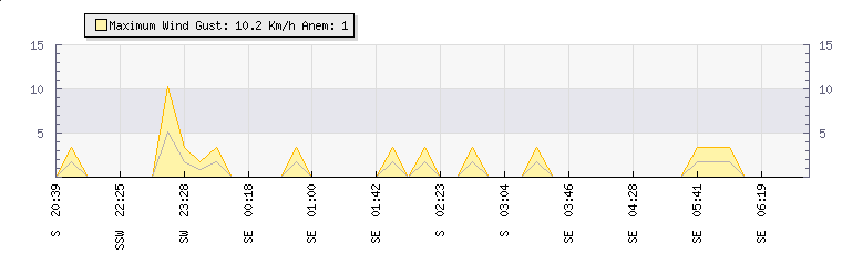 In the last few minutes the wind was South Easterly at an average speed of 2 kmh, reaching up to 3 kmh and a low of 0 kmh. The gust strength is3 kmh above the minimum speed |
