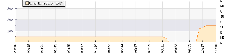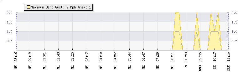 In the last few minutes the wind was North North West at an average speed of 1 mph, reaching up to 2 mph and a low of 0 mph. The gust strength is2 mph above the minimum speed |
