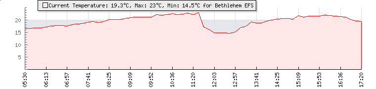 | GPS Co-ordinates: | S 28º 13' 43, E 28º 17' 36 |   			| ASL: | 5577 feet |               | Sunrise / Sunset: | 05:14 / 18:28 |              | Beaufort Scale: | Fresh Breeze |