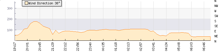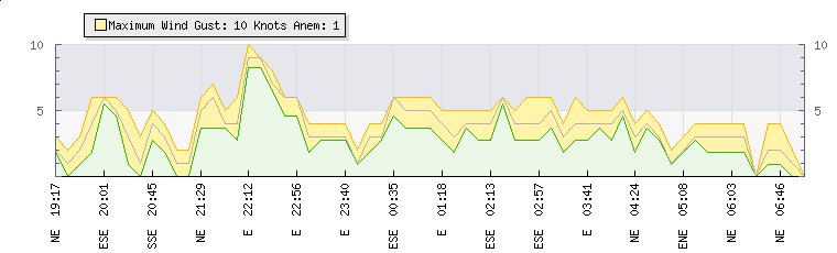 In the last few minutes the wind was East South East at an average speed of 3 knots, reaching up to 4 knots and a low of 2 knots. The gust strength is2 knots above the minimum speed |