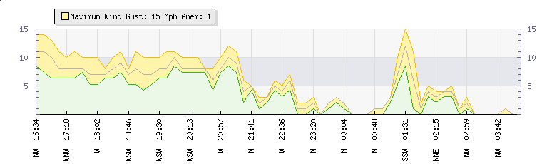 In the last few minutes the wind was North Westerly at an average speed of 0 mph, reaching up to 0 mph and a low of 0 mph. The gust strength is0 mph above the minimum speed |