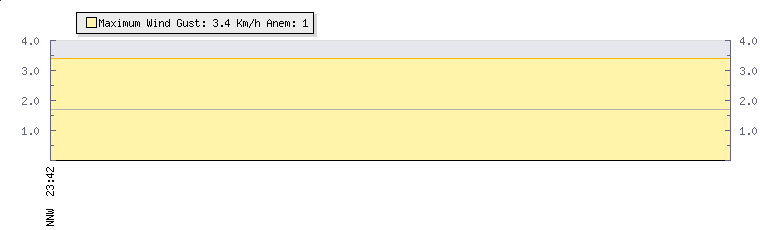 In the last few minutes the wind was Northerly at an average speed of 2 kmh, reaching up to 3 kmh and a low of 0 kmh. The gust strength is3 kmh above the minimum speed |