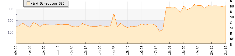 In the last few minutes the wind was North North West at an average speed of 1 mph, reaching up to 2 mph and a low of 0 mph. The gust strength is2 mph above the minimum speed |
