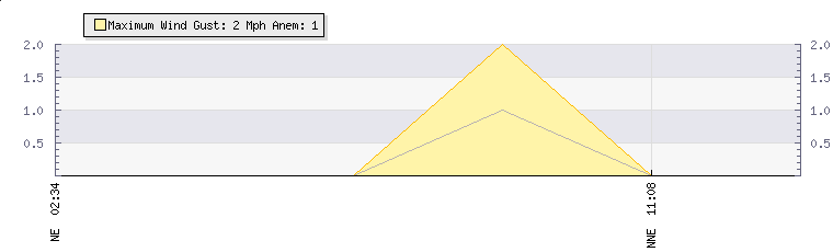 In the last few minutes the wind was North Easterly at an average speed of 0 mph, reaching up to 0 mph and a low of 0 mph. The gust strength is0 mph above the minimum speed |