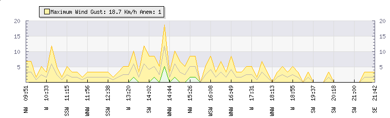 In the last few minutes the wind was North Westerly at an average speed of 1 kmh, reaching up to 2 kmh and a low of 0 kmh. The gust strength is2 kmh above the minimum speed |