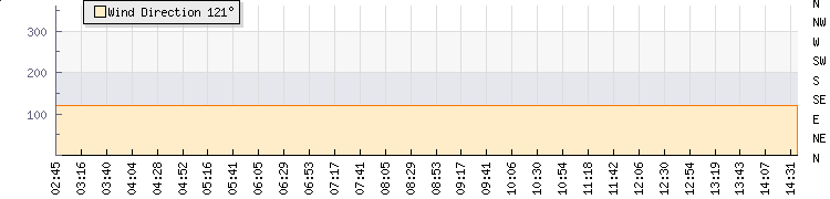 In the last few minutes the wind was East South East at an average speed of 0 mph, reaching up to 0 mph and a low of 0 mph. The gust strength is0 mph above the minimum speed |