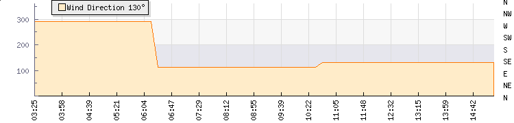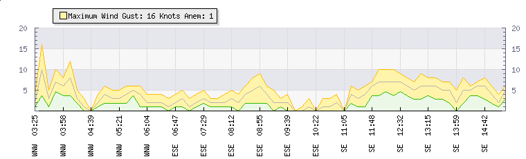 In the last few minutes the wind was South Easterly at an average speed of 6 knots, reaching up to 9 knots and a low of 3 knots. The gust strength is6 knots above the minimum speed |
