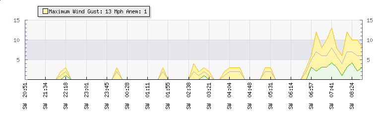 In the last few minutes the wind was South Westerly at an average speed of 0 mph, reaching up to 0 mph and a low of 0 mph. The gust strength is0 mph above the minimum speed |