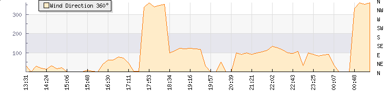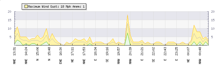 In the last few minutes the wind was North Easterly at an average speed of 1 mph, reaching up to 1 mph and a low of 0 mph. The gust strength is1 mph above the minimum speed |