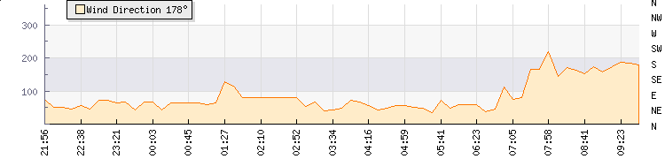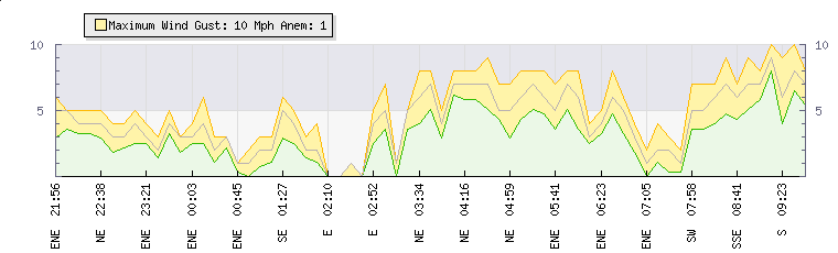 In the last few minutes the wind was Easterly at an average speed of 2 mph, reaching up to 4 mph and a low of 1 mph. The gust strength is3 mph above the minimum speed |