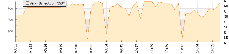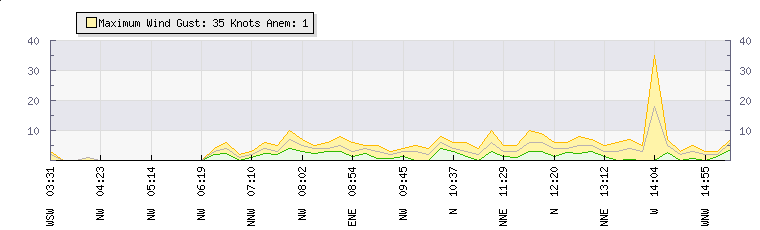 In the last few minutes the wind was West North West at an average speed of 3 knots, reaching up to 5 knots and a low of 0 knots. The gust strength is5 knots above the minimum speed |