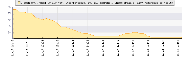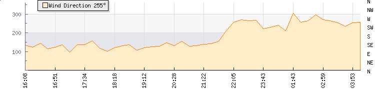 In the last few minutes the wind was Westerly at an average speed of 2 kmh, reaching up to 3 kmh and a low of 0 kmh. The gust strength is3 kmh above the minimum speed |