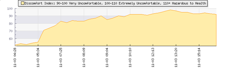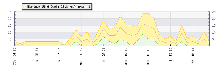 In the last few minutes the wind was Northerly at an average speed of 13 kmh, reaching up to 19 kmh and a low of 7 kmh. The gust strength is12 kmh above the minimum speed |