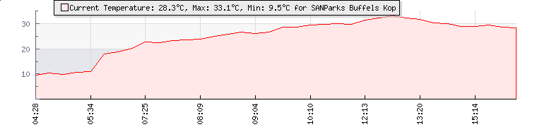 | GPS Co-ordinates: | S 33º 52' 22, E 22º 39' 20 | | ASL: | 2415 feet | | Sunrise / Sunset: | 05:28 / 18:58 | | Beaufort Scale: | Gentle Breeze |