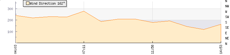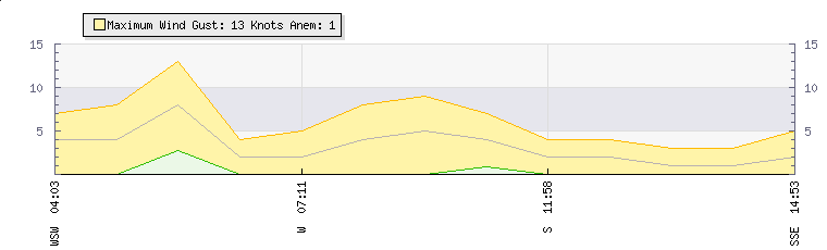 In the last few minutes the wind was South South West at an average speed of 5 knots, reaching up to 9 knots and a low of 0 knots. The gust strength is9 knots above the minimum speed |