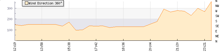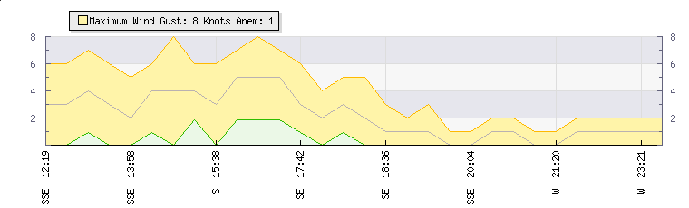 In the last few minutes the wind was South Westerly at an average speed of 1 knots, reaching up to 2 knots and a low of 0 knots. The gust strength is2 knots above the minimum speed |