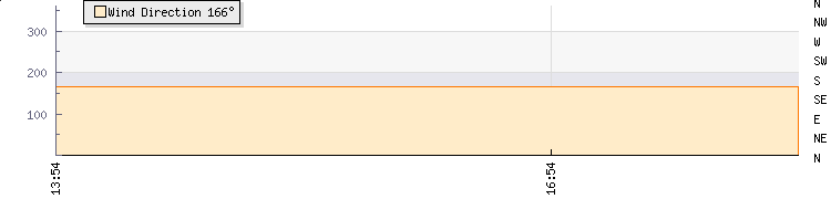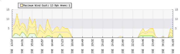In the last few minutes the wind was South South East at an average speed of 0 mph, reaching up to 0 mph and a low of 0 mph. The gust strength is0 mph above the minimum speed |
