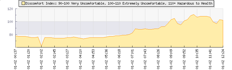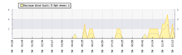 In the last few minutes the wind was Southerly at an average speed of 1 mph, reaching up to 2 mph and a low of 0 mph. The gust strength is2 mph above the minimum speed |
