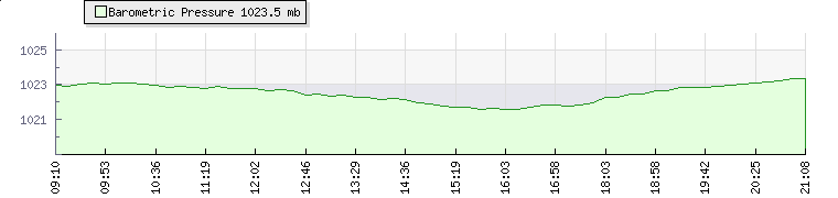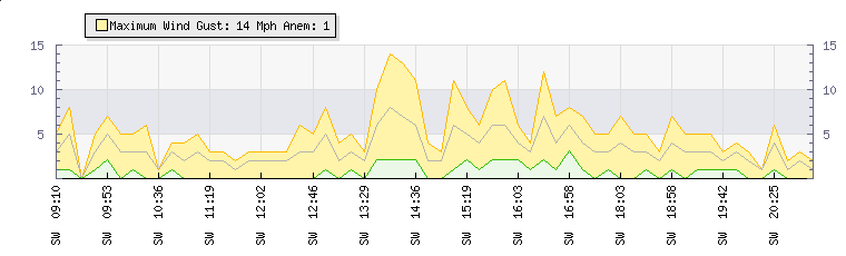 In the last few minutes the wind was South Westerly at an average speed of 5 mph, reaching up to 7 mph and a low of 2 mph. The gust strength is5 mph above the minimum speed |