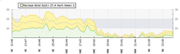 In the last few minutes the wind was West North West at an average speed of 1 kmh, reaching up to 2 kmh and a low of 0 kmh. The gust strength is2 kmh above the minimum speed |