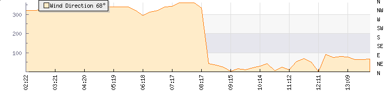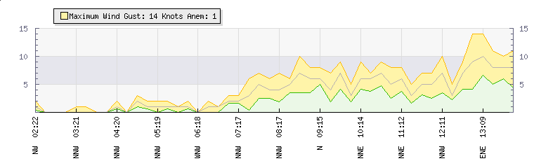 In the last few minutes the wind was Easterly at an average speed of 3 knots, reaching up to 5 knots and a low of 2 knots. The gust strength is3 knots above the minimum speed |