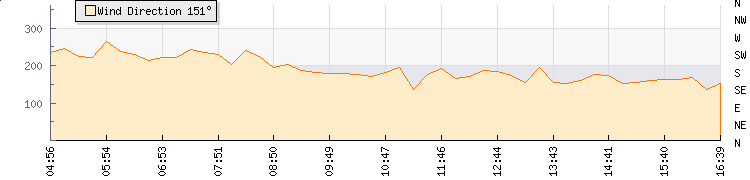 In the last few minutes the wind was South South East at an average speed of 8 knots, reaching up to 11 knots and a low of 4 knots. The gust strength is7 knots above the minimum speed |