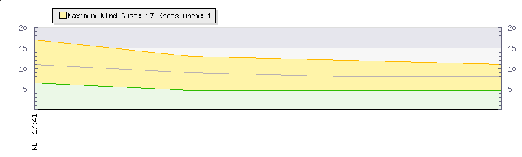 In the last few minutes the wind was North Easterly at an average speed of 8 knots, reaching up to 11 knots and a low of 5 knots. The gust strength is6 knots above the minimum speed |