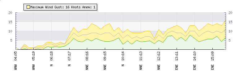 In the last few minutes the wind was Easterly at an average speed of 7 knots, reaching up to 10 knots and a low of 4 knots. The gust strength is6 knots above the minimum speed |