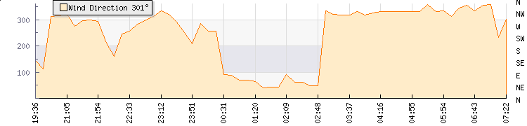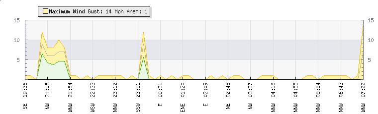 In the last few minutes the wind was North North West at an average speed of 1 mph, reaching up to 1 mph and a low of 0 mph. The gust strength is1 mph above the minimum speed |