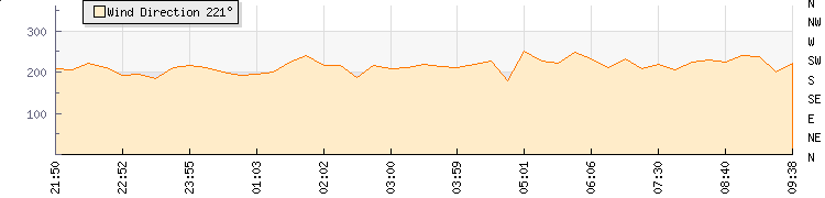 In the last few minutes the wind was South Westerly at an average speed of 4 knots, reaching up to 6 knots and a low of 3 knots. The gust strength is3 knots above the minimum speed |