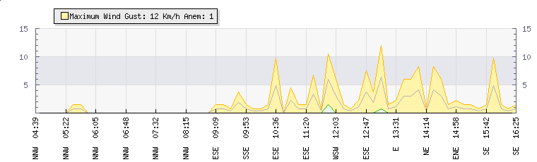 In the last few minutes the wind was West South West at an average speed of 1 kmh, reaching up to 2 kmh and a low of 0 kmh. The gust strength is2 kmh above the minimum speed |