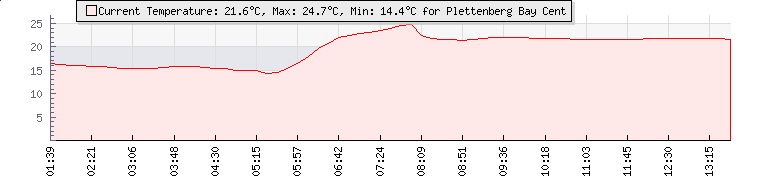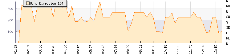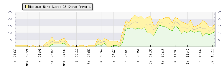 | Wind Gust: | 23 knots | Min Temp: | 14.4 °C | Max Temp: | 24.7 °C | | Wind Average: | 18 knots | Min Hum: | 67 % | Max Hum: | 90 % | |  |