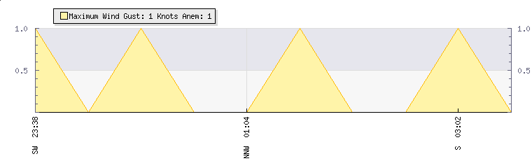 In the last few minutes the wind was Northerly at an average speed of 0 knots, reaching up to 0 knots and a low of 0 knots. The gust strength is0 knots above the minimum speed |