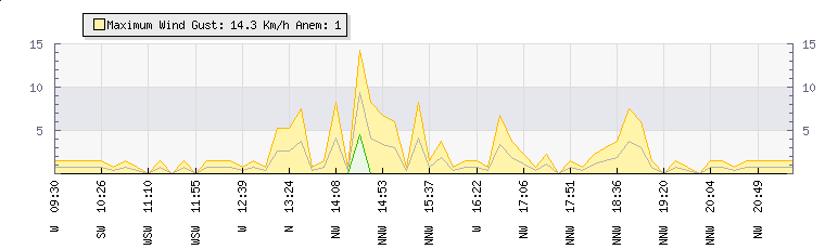 In the last few minutes the wind was Northerly at an average speed of 0 kmh, reaching up to 0 kmh and a low of 0 kmh. The gust strength is0 kmh above the minimum speed |