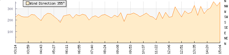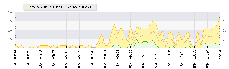 In the last few minutes the wind was North Easterly at an average speed of 0 kmh, reaching up to 0 kmh and a low of 0 kmh. The gust strength is0 kmh above the minimum speed |