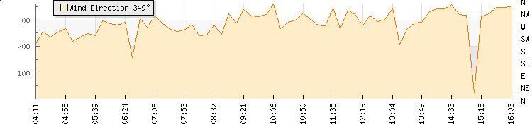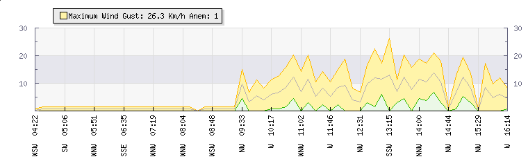 In the last few minutes the wind was Northerly at an average speed of 11 kmh, reaching up to 18 kmh and a low of 3 kmh. The gust strength is15 kmh above the minimum speed |