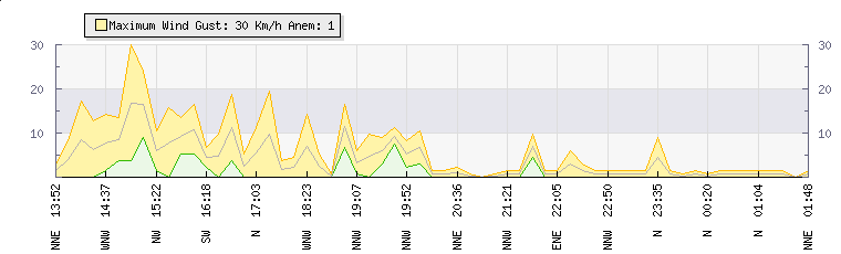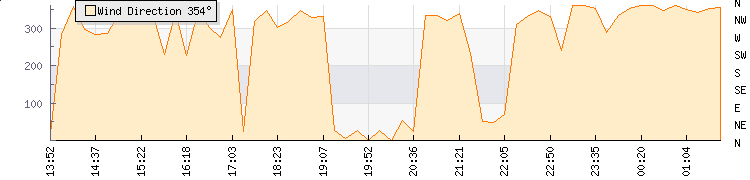 In the last few minutes the wind was Northerly at an average speed of 1 kmh, reaching up to 1 kmh and a low of 0 kmh. The gust strength is1 kmh above the minimum speed |