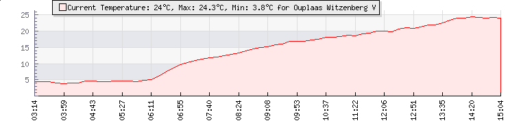 | GPS Co-ordinates: | S 33º 9' 47, E 19º 8' 02 | | ASL: | 2949 feet | | Sunrise / Sunset: | 05:45 / 19:10 | | Beaufort Scale: | Calm |
