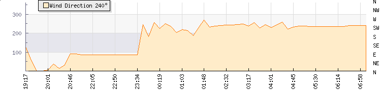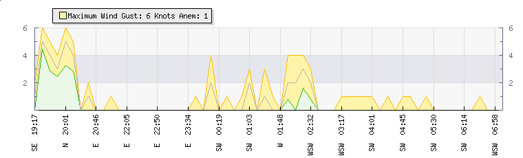 In the last few minutes the wind was Easterly at an average speed of 0 knots, reaching up to 0 knots and a low of 0 knots. The gust strength is0 knots above the minimum speed |