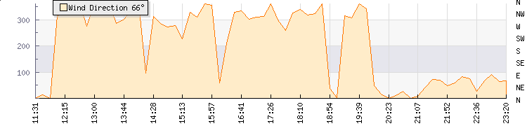 In the last few minutes the wind was North Westerly at an average speed of 3 knots, reaching up to 5 knots and a low of 2 knots. The gust strength is3 knots above the minimum speed |